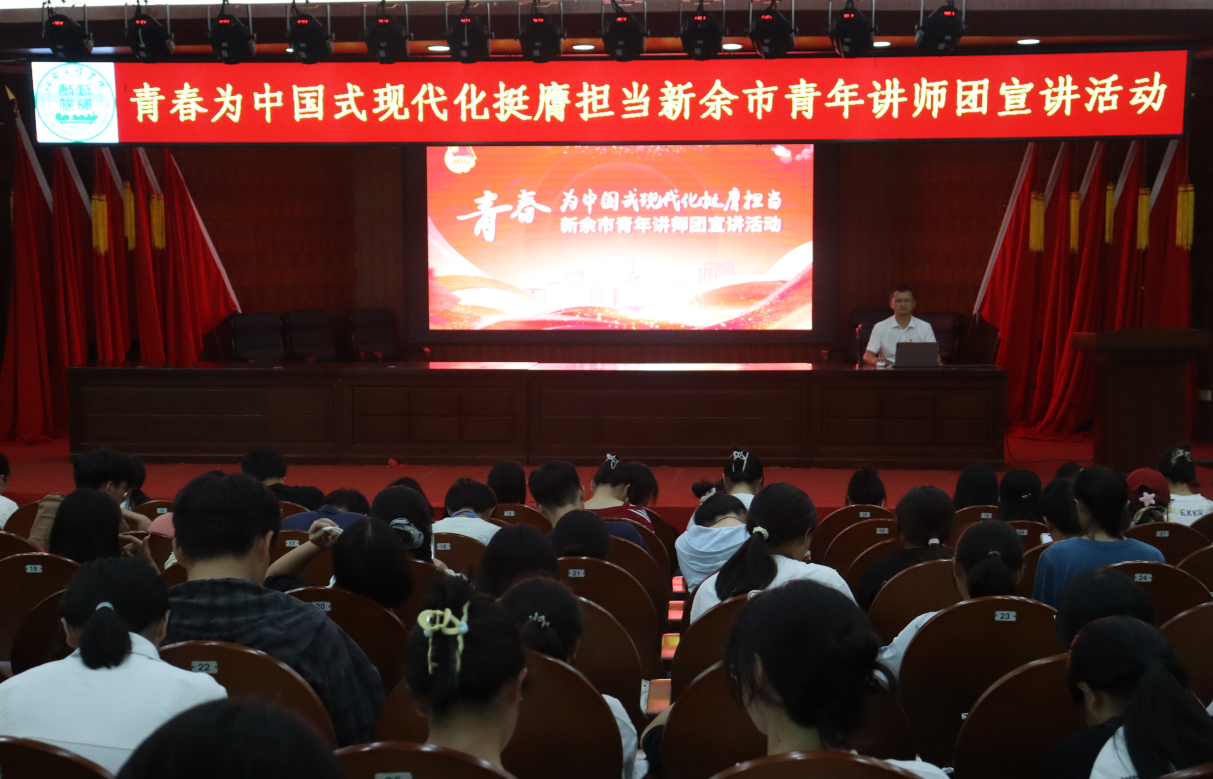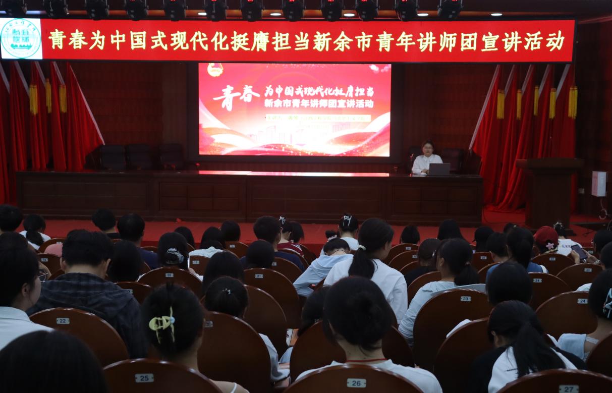 为深入学习贯彻习近平新时代中国特色社会主义思想、党的二十大和二十届二中、三中全会精神,深刻领会习近平总书记关于青年工作的重要思想。10月15日下午15点,新余市青年讲师宣讲团成员施新华、黄琴走进江西工程学院天工校区学术报告厅开展了“青春为中国式现代化挺膺担当”主题宣讲活动,与来自各学院的350名青年学生代表,共赴一场思想与青春的深刻对话。