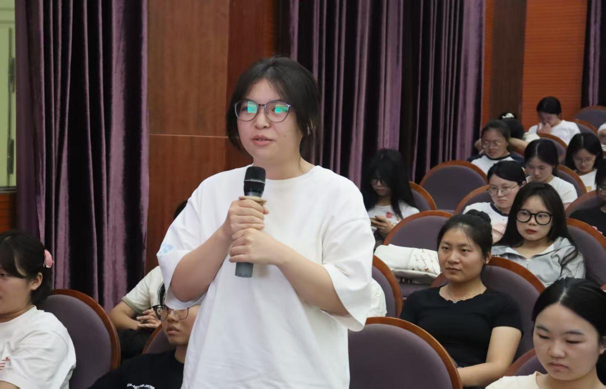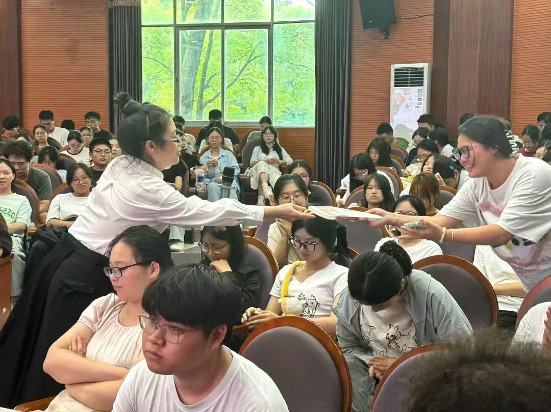 宣讲团成员、江西工程学院马克思主义学院直属党支部副书记黄琴用丰富的案例诠释中国式现代化的基本特征,以“书写属于我们这代人的奋斗答卷”聚焦青年成长成才与时代使命,结合当下社会发展趋势与大学生成长特点,为新生们解读如何将个人奋斗融入国家发展大局。她指出,新时代为青年提供了广阔的舞台,无论是学术科研、创新创业、还是志愿服务、社会实践、都是青年践行奋斗精神的重要途径。“作为新时代大学生,你们不仅要练就过硬本领,更要树立远大理想,把个人的理想追求融入党和国家事业之中,让青春在全面建设社会主义现代化国家的火热实践中绽放绚丽之花。”黄琴还与学生互动交流,耐心解答大家关于大学规划、奋斗方向的疑问,现场掌声不断。