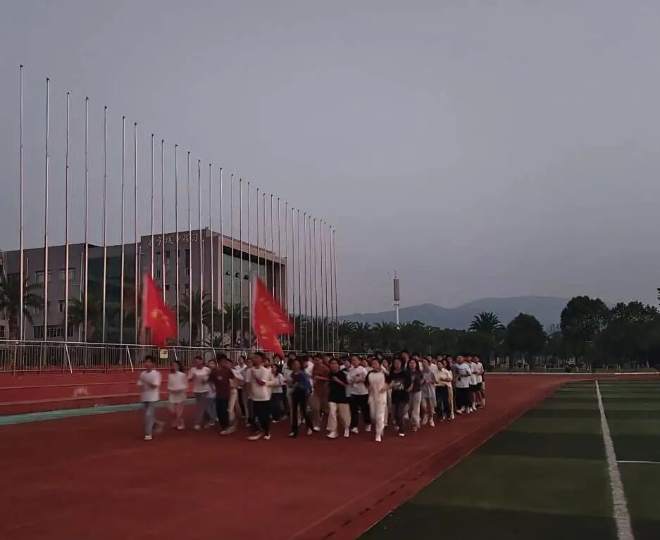 当月牙儿还高高悬挂在天空上时,志愿者们脸上洋溢着笑容,整理好队伍准备晨跑。洒在跑道上的晨光,飘扬着的红旗,整齐划一的脚步,响亮的口号声,构成记忆中最美好的画面。在这个美好的早晨,他们一同拉开了新篇章的序幕,书写自己的青春故事。