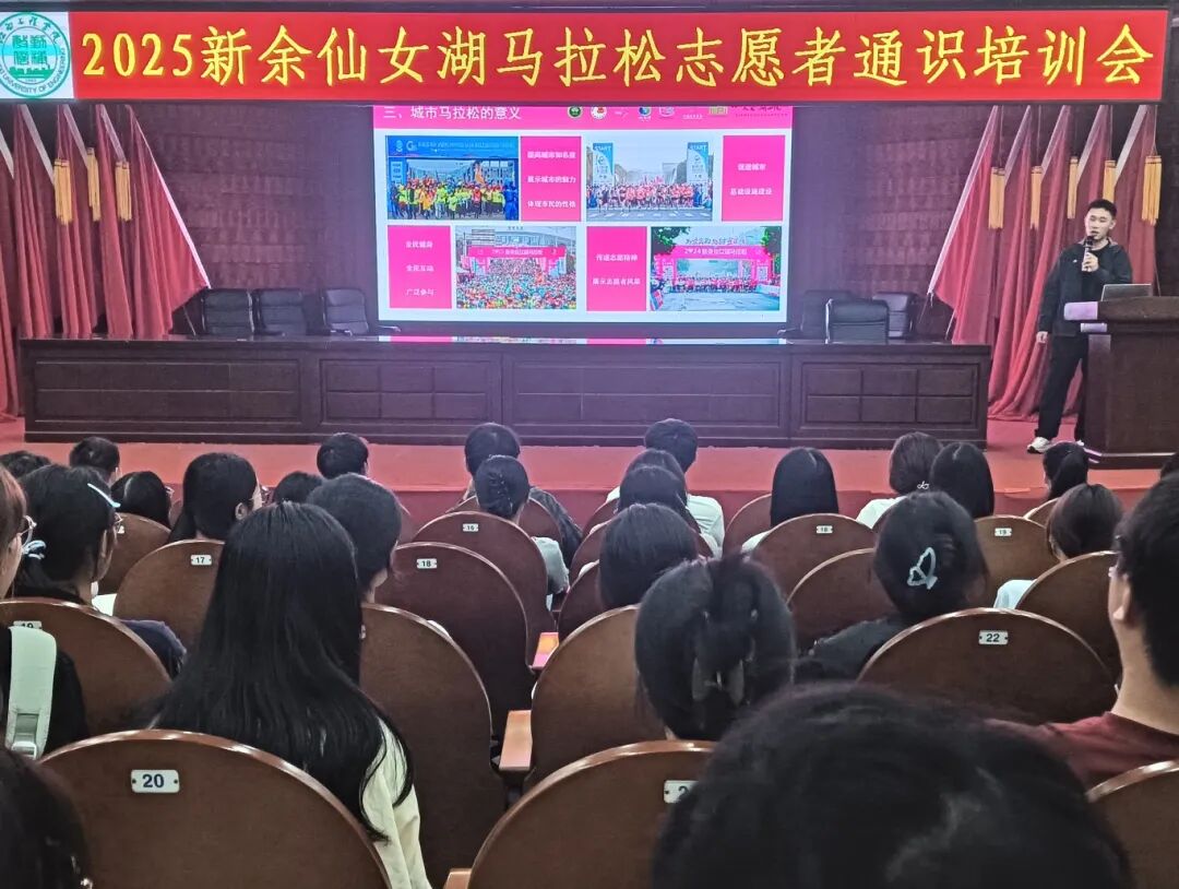 2025年10月15日,为保障“2025新余仙女湖马拉松”赛事顺利举行,一场关键性的志愿者培训会于江西工程学院学术报告厅有序开展。志愿者们齐聚一堂,以饱满的精神投入赛前学习,旨在以最饱满的热情和最专业的服务,为这场高规模的体育赛事保驾护航。