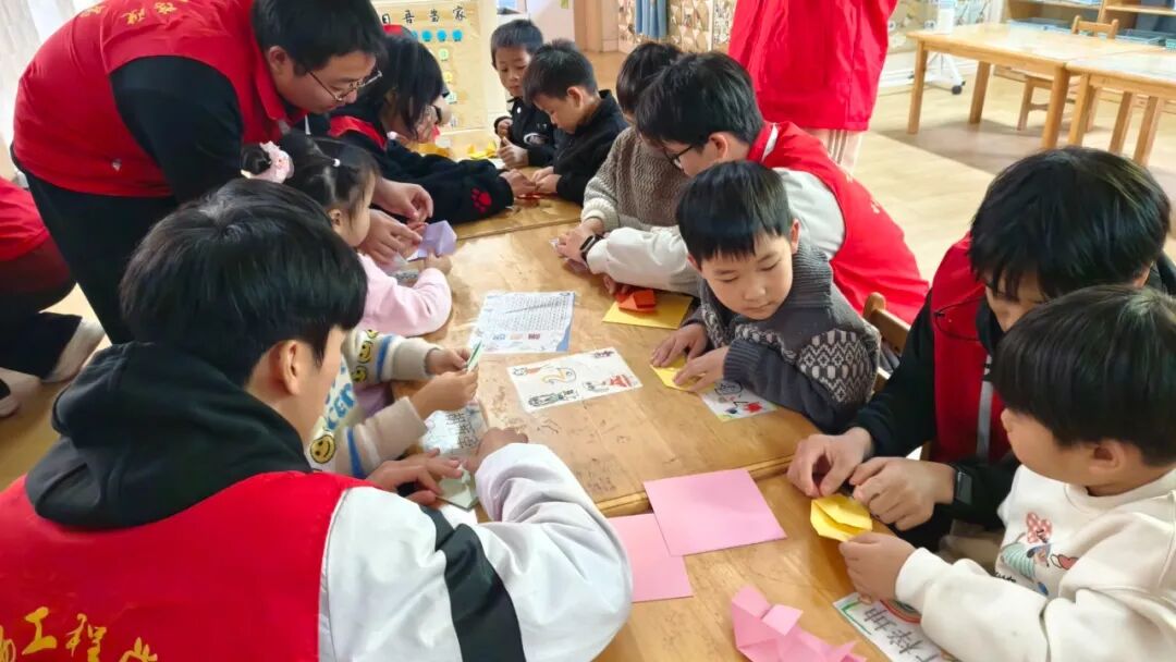 为丰富儿童课余生活,提升儿童动手实践能力,培养大学生的协作能力,江西工程学院校团委青年志愿者协会于2025年12月3日在天工幼儿园开展“彩虹课堂”主题活动。志愿者们用耐心和细心为孩子们带来了一场充满欢乐与温暖的趣味实践活动,让童真与善意在互动中悄然交融。
