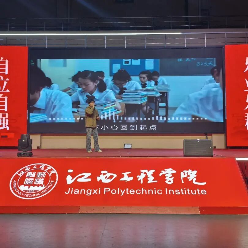 演出伊始,电子信息工程学院院长邹小金登台致辞。他寄语全体学子:“北斗象征着精准与探索,电子工程代表着创新与未来。希望你们以青春为笔,以奋斗为墨,在电子信息的浪潮中筑梦、逐梦、圆梦,谱写出属于新时代青年的‘电子新篇’。”掷地有声的话语,为整场汇演注入了信念与力量,也点燃了现场师生的热情。
