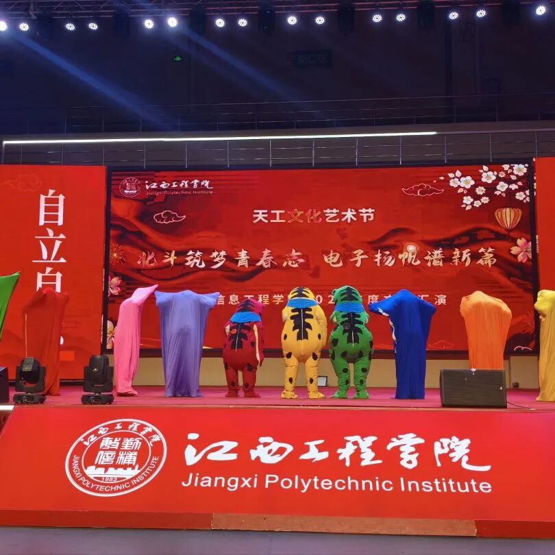 从动感街舞到深情歌曲,从幽默小品到创意走秀,13个节目轮番登场,每一个节目都凝聚着电子信息工程学院学子的心血与创意。舞台上,灯光与表演交相辉映;舞台下,掌声与欢呼此起彼伏。这场由电子学子自主创作、编排的文艺盛宴,不仅是才艺的展示,更是“自立自强、乐业乐群”校训精神的生动诠释。