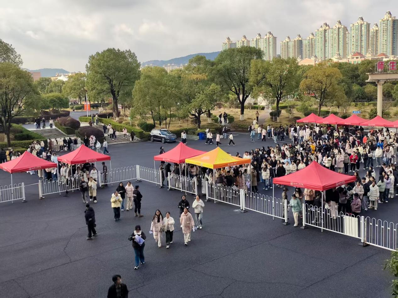 考试当日,校园秩序井然,考场标识清晰、指引明确。考生在工作人员引导下有序完成身份核验及个人物品存放,规范进入考场。全体监考与考务人员恪尽职守、操作规范,严格执行考试纪律,营造了公平、公正、安静的考试环境。学校相关部门通力协作,安保人员定点巡逻,医疗点全程待命,后勤保障有力,为考试顺利开展提供了坚实支撑。