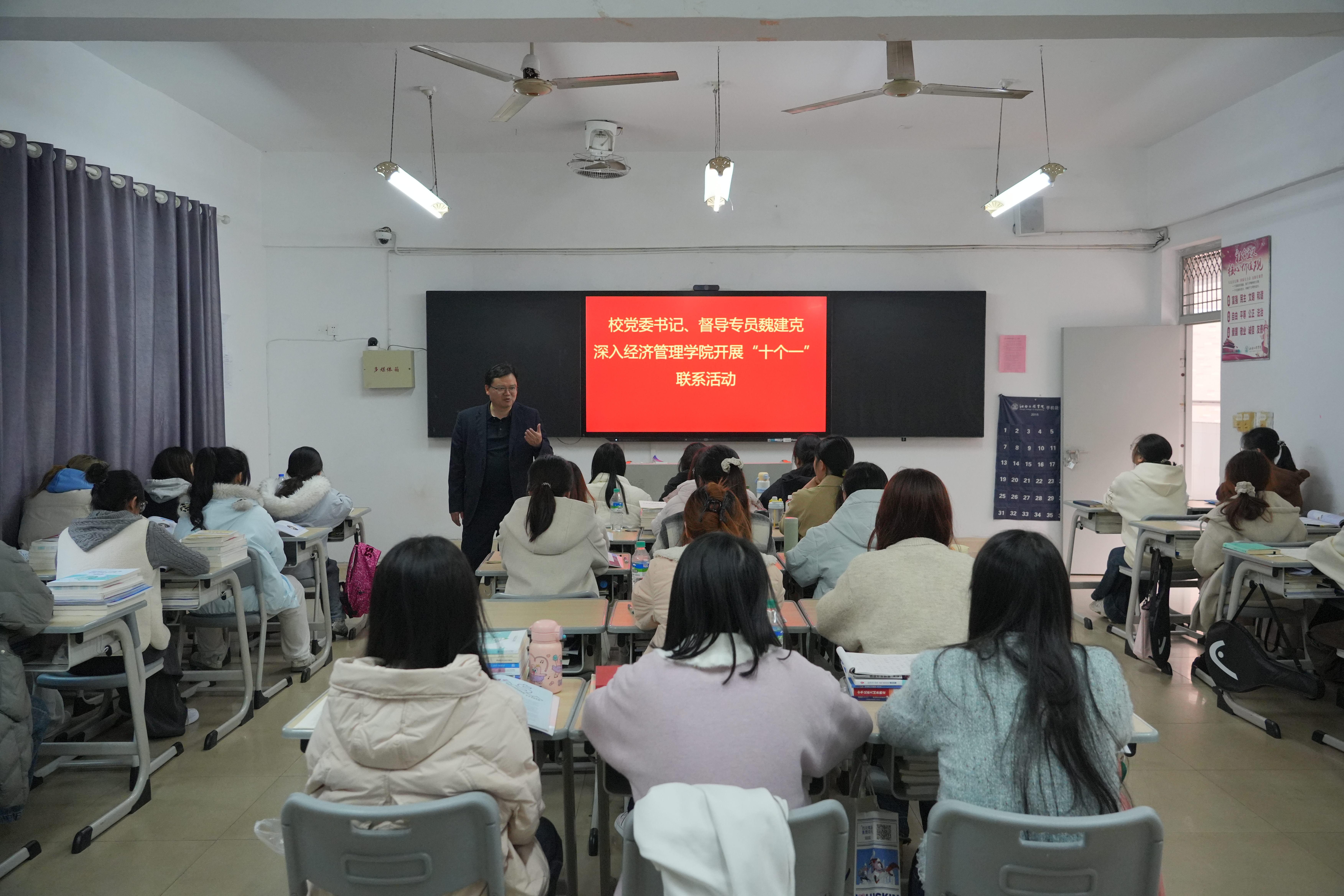 为进一步密切学校领导干部与师生的联系,精准掌握基层教学、管理及学生培养等实际情况,12月11日下午,校党委书记、督导专员魏建克走进经济管理学院,开展“十个一”联系活动。