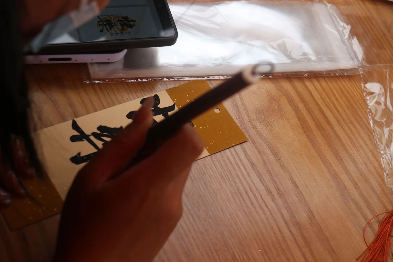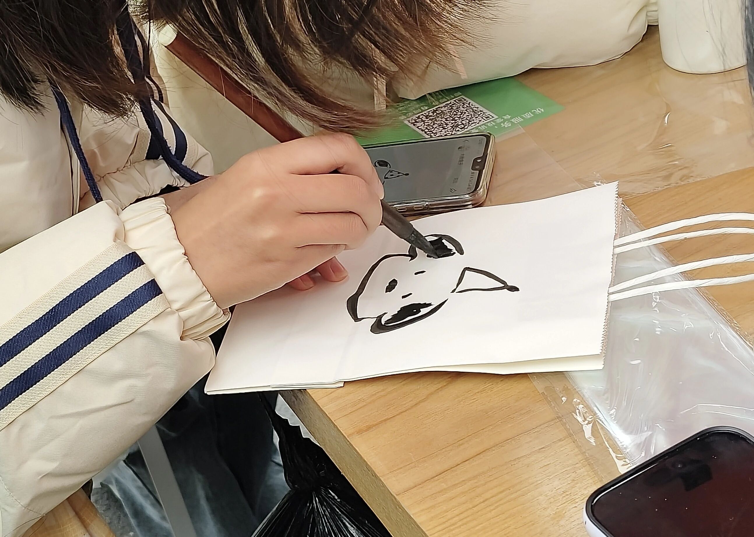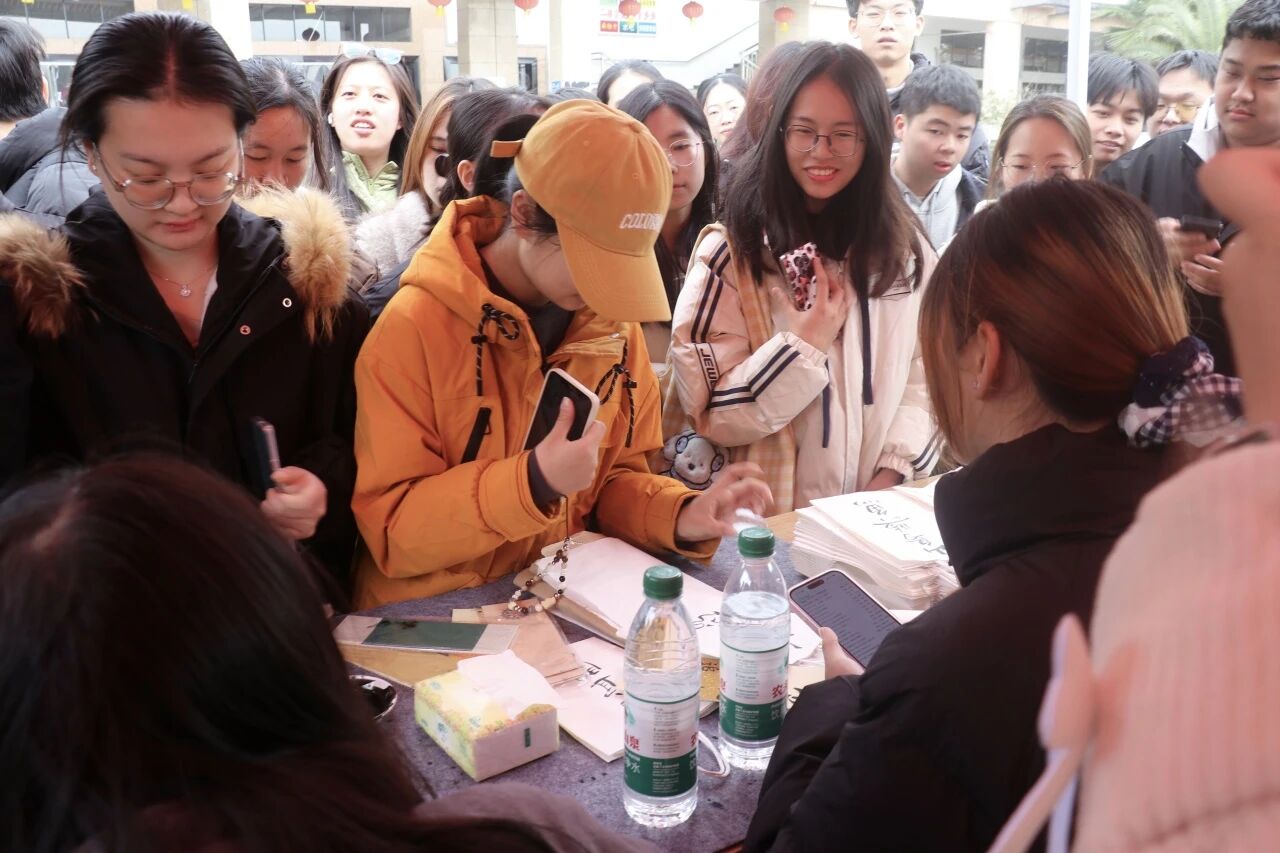 当日的温暖,由无数个被笔墨定格的瞬间构成:在经典临摹区,一位同学俯身案前,屏息静气,笔尖在名帖上从容游走;自由创作区,一位同学饱蘸浓墨,郑重写下“万事如意”四个大字,圆润饱满的笔触中满载着对新年的朴素祝福。而现场的猜谜互动区则不时爆发出欢笑与掌声,同学们围绕书法相关的谜题争相竞猜,在思辨与趣味中,进一步加深了对笔墨文化的感知。这些动静相宜的瞬间,共同汇成了冬日校园里最温暖的风景。