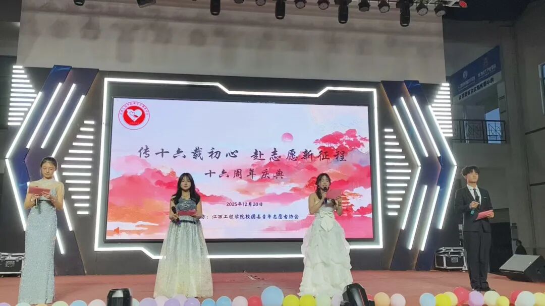 十六载岁月如歌,十六载风雨兼程。江西工程学院青年志愿者协会以青春为画笔,为志愿事业染上暖色光辉,不忘初心,牢记使命。2025年12月20日,仙女湖校区第二展厅内灯火璀璨,青年志愿者协会十六周年庆典在万众期待中拉开序幕。回首过往峥嵘岁月,协会在时光的磨练下犹如一颗温润的珍珠,闪耀着不朽的荣光;展望未来征程,协会将秉持责任担当,续写璀璨篇章。