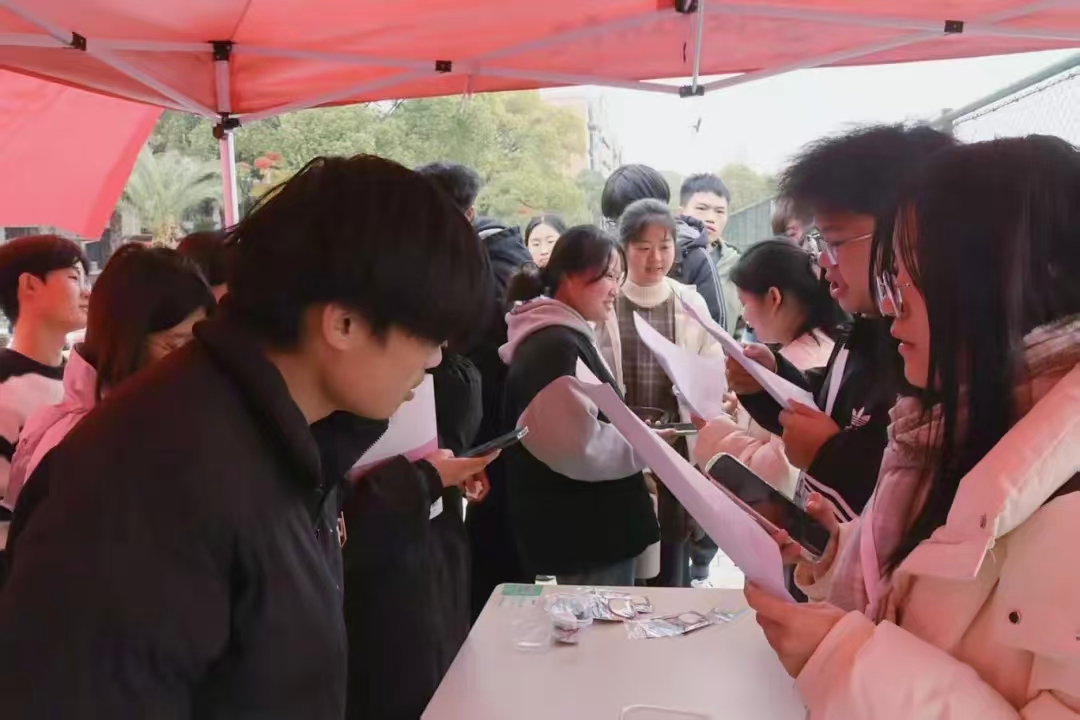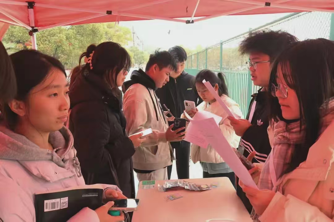 活动现场,红色帐篷下人头攒动,同学们热情高涨地围在答题区,手持试题纸认真思考,彼此间还不时交流讨论红色知识。从革命历史事件到红色经典故事,从英雄人物事迹到新时代红色精神,一道道问答题目串联起百年红色征程。参与的同学中:有迅速应答,自信满满地兑换小奖品;有驻足思索,在互动中重温红色记忆。