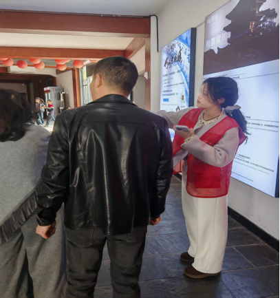 在景区的电子导览屏前,我结合屏幕信息为游客讲解景区历史文化与游玩亮点;在古色古香的景区入口处,我主动维持秩序,保障游客安全有序进入景区。