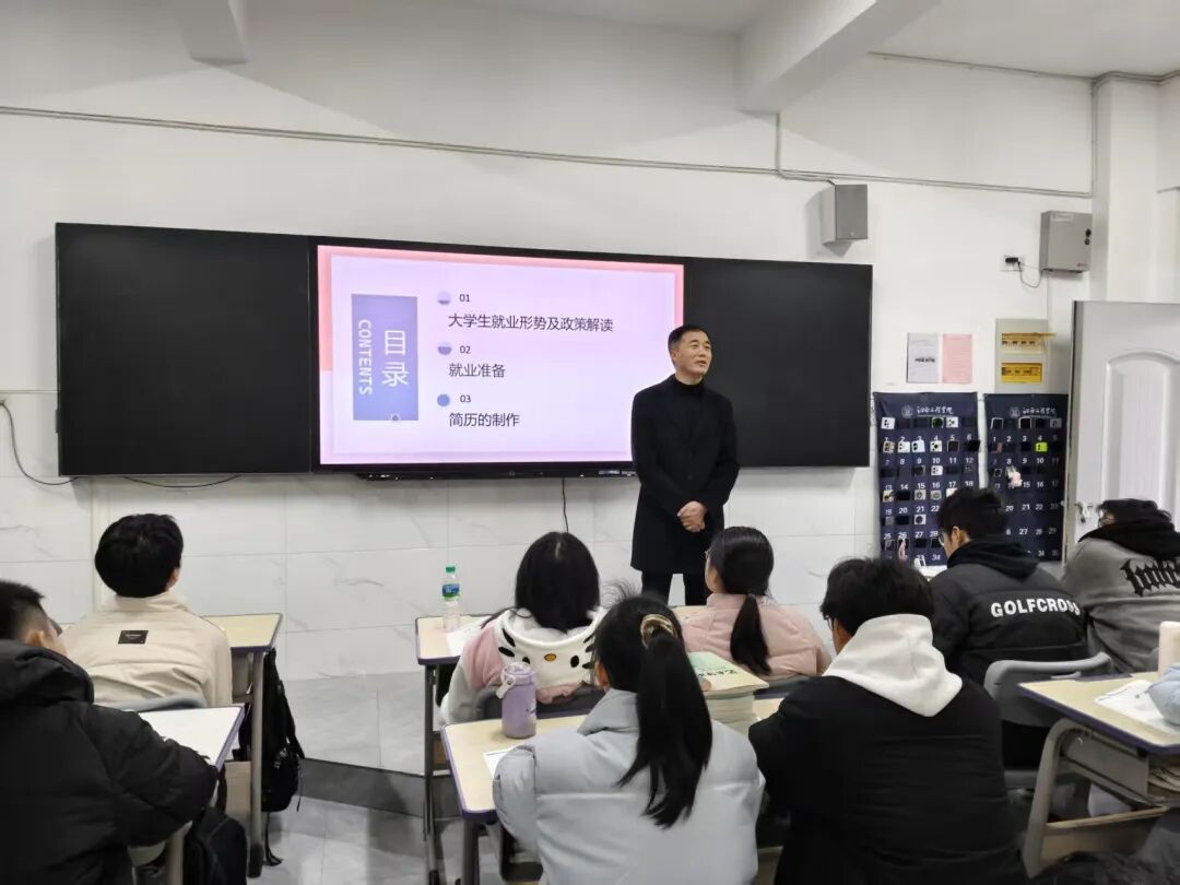 沈校长在授课中语言朴实、重点清晰,结合学院专业特色精准指导,现场为学生答疑解惑,给出了极具操作性的成长建议。他强调,大学生要早规划、早准备、早行动,在提升专业技能的同时不断锤炼综合素养,以积极健康的心态面对就业选择。