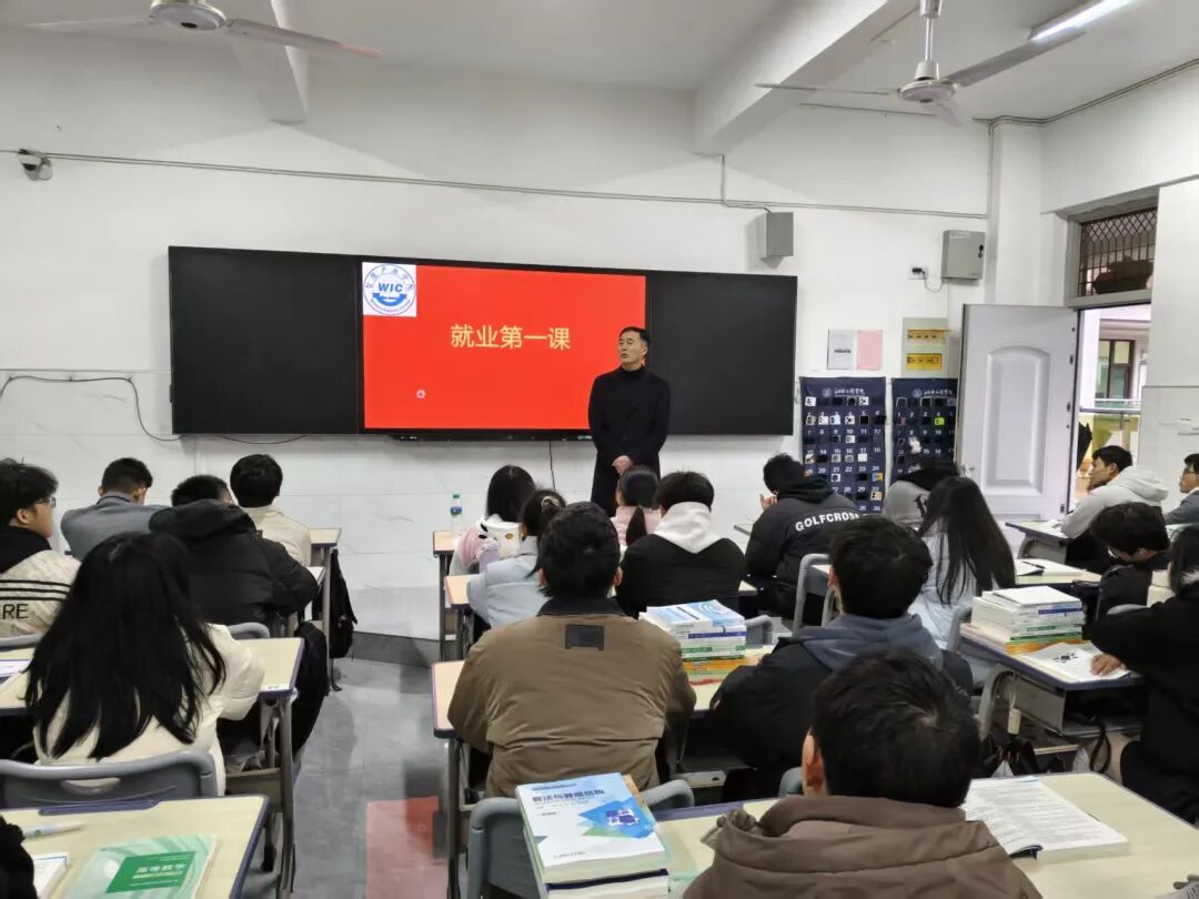 堂上课,沈良副校长立足数字经济与智慧产业发展大势,结合当前就业环境、行业需求和人才标准,从职业定位、能力塑造、心态调整、求职准备等多个维度展开深入讲解。他用真实生动的行业案例、企业用人需求和校友成长经历,引导同学们认清时代机遇、找准自身优势、明确努力方向,鼓励大家立足专业、勤学苦练,把个人发展融入国家产业发展大局。整堂课程内容充实、重点突出,互动交流充分,有效激发了同学们的就业热情与奋斗动力。