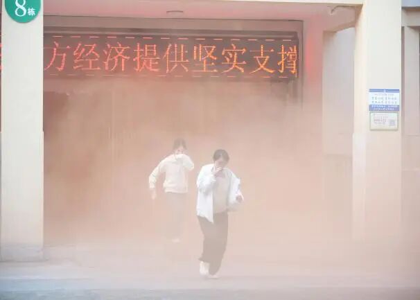 本次演练以“无脚本、无预告”形式开展,未提前告知具体时间,最大程度还原突发火情场景。16时30分,演练正式开始。天工校区全部宿舍楼内迅速模拟起火,烟雾弥漫,警报骤响,楼内学生在听到警报后,立即依据日常所学的消防知识自主判断、迅速反应。保卫处同步启动应急响应,各岗位人员按预案要求,展开火情侦察、初期扑救、疏散引导、通讯联络等应急处置工作。整个疏散过程紧张有序,同学们在工作人员引导下,沿安全出口快速有序撤离至室外安全区域。