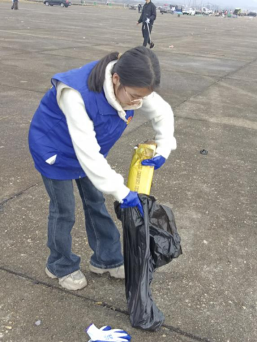 活动现场,志愿者们分工协作、各司其职,以小组为单位划分责任区域。我所在的小组负责机场东区清洁工作,这里人员停留集中、垃圾产生量较大。大家手持扫帚、夹子、垃圾袋等工具,顶着大风,细致清理每一处角落:地面上的纸屑和烟头、草坪里的白色垃圾、边角处的零散杂物,我们逐一捡拾、认真清扫。大风天气让轻质垃圾极易飘散,增加了清理难度,但大家毫不懈怠,及时将垃圾收拢装袋、集中处理,坚决防止二次污染。汗水浸湿了衣衫,双手沾满了灰尘,但没有一个人叫苦、没有一个人退缩。经过一下午的并肩奋战,机场环境焕然一新,整洁有序的面貌重新展现,本次环境整治志愿活动圆满完成。