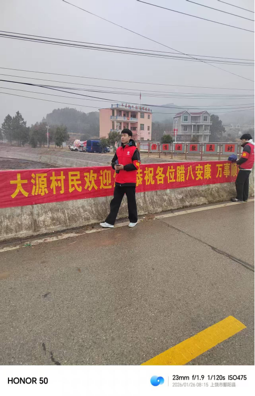 大家好,我是2025级物联网工程本科一班的王文凯,来自电子信息工程学院。作为一名大一学生,今年寒假,我积极响应学校号召,报名参加了“返家乡”寒假社会实践活动,回到了我的家乡——江西省上饶市鄱阳县枧田街乡大源村。在这个熟悉的村落里,我迈开脚步,走近乡土,投身志愿服务,用实际行动传递青春温暖,这段充实而有意义的经历,也成为了我这个假期最宝贵的收获。