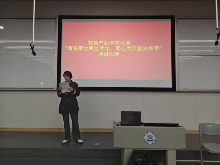 其他参赛同学也各展风采、表现亮眼。有的以身边各民族同学互助友爱的真实事例为切入点,讲述校园里守望相助的温暖日常;有的从红色历史与文化传承出发,抒发对中华民族大家庭的认同与热爱;还有的立足青年担当,畅谈如何以实际行动维护民族团结、助力民族复兴。同学们语言真挚、台风自信,充分展现了智慧学子昂扬向上的精神风貌。此次演讲比赛,不仅为学院学子搭建了展示自我、传递思想的良好平台,更以青春之音凝聚起民族团结的磅礴力量,让“团结一心、共赴复兴”的坚定信念在校园蔚然成风。