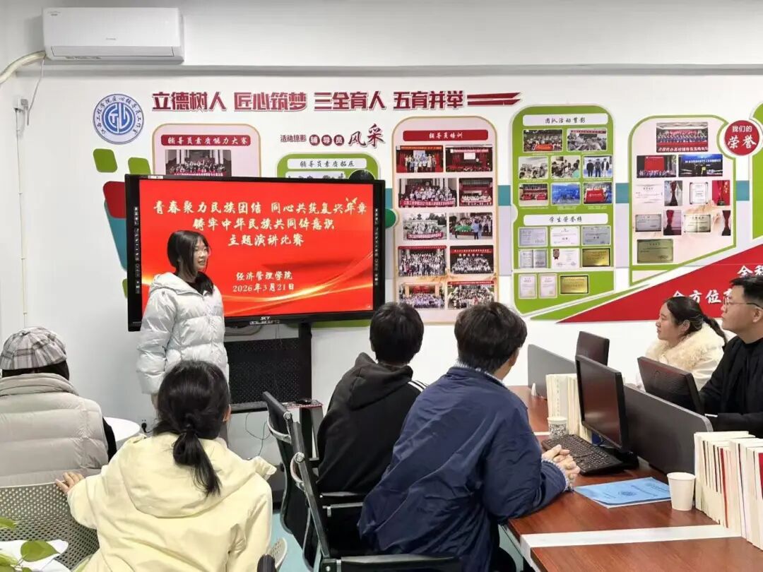 为深入贯彻落实习近平总书记关于加强和改进民族工作的重要思想,将铸牢中华民族共同体意识全面融入学校育人全过程,引导广大学生增强对中华民族共同体的认同。3月21日19:00,经济管理学院在一站式学生社区团员活动室成功举办了铸牢中华民族共同体意识主题演讲比赛分院初选赛。学院党总支副书记郭远峰、团总支书记陈鹏、辅导员代表李桃等出席担任评委。