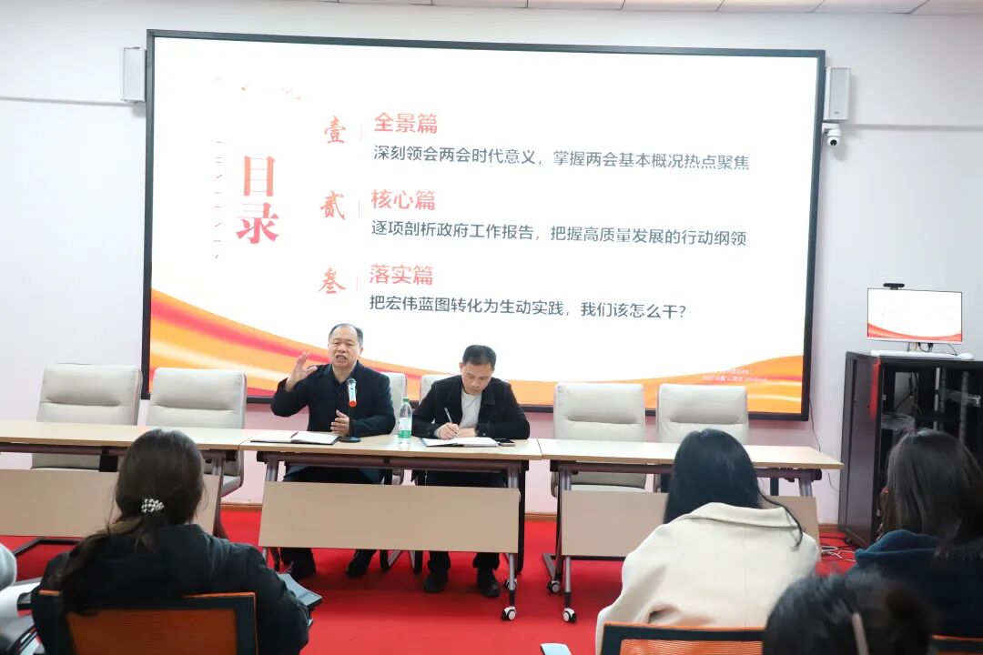 春潮涌动处,奋进正当时。3月27日晚,江西工程学院“一站式”学生社区灯火通明,“北斗星・天工夜话”2026年第1期活动如期举行。本次活动以“全国两会精神宣讲+本科教学工作合格评估动员+寒假‘4+X’实践分享”为核心内容,通过理论解读、政策宣讲、经验交流等形式,为来自抱石艺术学院、经济管理学院等4个学院的60余名团学干部及辅导员代表搭建了思想引领与实践交流的平台。活动由学工部副部长周卫忠主持,马克思主义学院直属党支部书记于永清、辅导员李桃分别作专题宣讲。