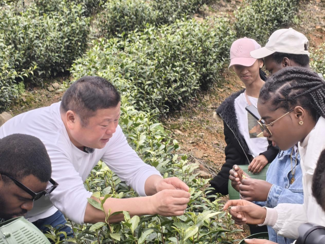 时值清明前夕,正值“明前茶”采摘的黄金时节。在茶农与带队教师的悉心指导下,留学生们学习了辨别白茶鲜叶的标准,亲手体验“一芽一叶”的采摘手法。在连绵叠翠的茶垄间,同学们一边劳动,一边用中文与茶农交流心得,亲身感受中国农耕文化“顺应天时”的智慧与田园劳作的乐趣。