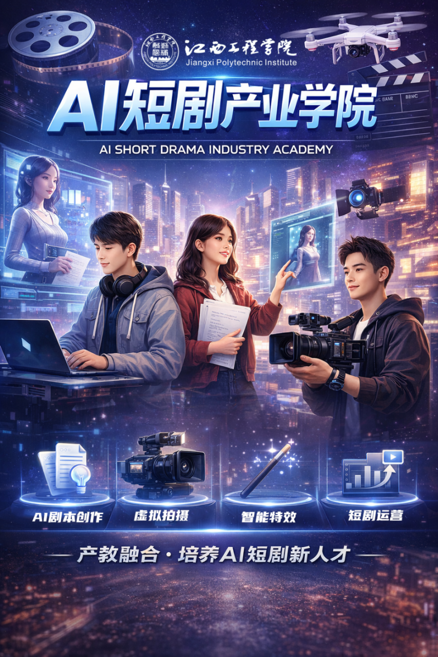 近日,江西工程学院紧扣国家文化高质量发展及数字中国建设相关政策导向,积极响应《关于推动文化高质量发展的若干经济政策》《数字中国建设2025年行动方案》中“推动文化建设数字化赋能、培育数字领域新质生产力”的号召,依托“微短剧”首次纳入国家“十五五”规划的产业机遇,联动校内抱石艺术学院,全力推进AI短剧产业学院筹备工作。目前各项筹备事宜正有序落地,该学院拟于近期正式成立。此举既是高校响应国家文化与科技融合战略的具体实践,也将填补区域内AI短剧复合型人才培养空白,为行业发展注入高校力量,标志着学校在艺技融合、产教融合领域迈出全新步伐。