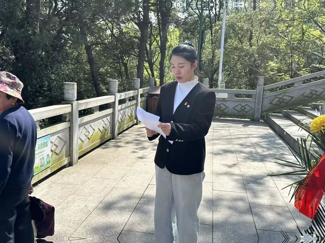 祭扫仪式结束后,学院党员教师刘露就地开讲,以仰天岗烈士陵园为课堂,为全体师生带来了一堂沉浸式专题党课。她讲述了先辈们在这片热土上为争取民族独立、人民解放而舍生忘死的峥嵘过往,引导大家在肃穆的纪念现场中触摸历史温度、感悟初心力量,推动思政教育走出传统课堂、融入红色实景,让理论学习真正直抵人心、见行见效。
