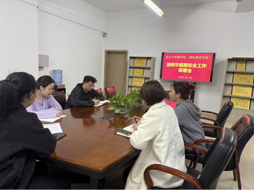 为切实保障全体学生假期安全,筑牢校园安全防线,2026年3月30日,语言与传播学院(国际教育学院)召开清明节假期安全工作部署会,全面安排清明节假期安全相关工作。本次会议由语言与传播学院(国际教育学院)党总支书记谢丽丽主持,各班辅导员共同参与。
