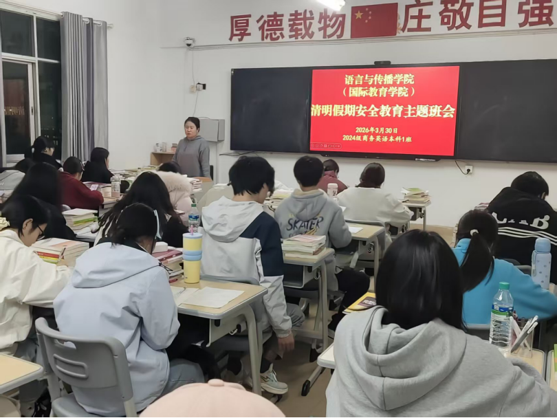 部署会后,语言与传播学院(国际教育学院)各班级迅速响应,第一时间召开清明假期安全教育主题班会。班会上,各班重点讲解防火防盗、安全出行、防范诈骗、文明祭扫等安全知识,提醒学生离校前切断电源、保管好财物,外出遵守交通规则,倡导绿色文明祭扫方式,切实将安全提醒落实到每一位同学。