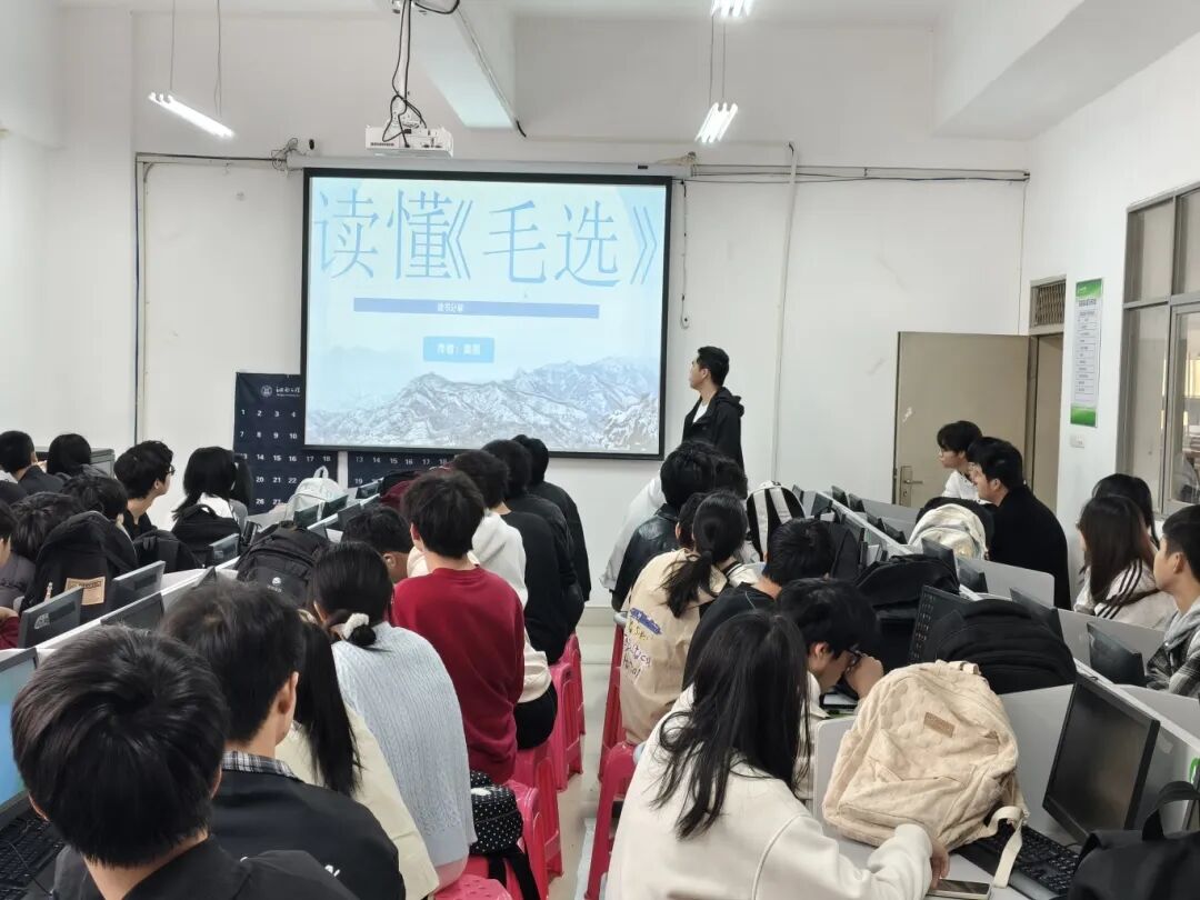 2025级软件工程本科2班陈博文同学则以《创业史》为主题,他结合20世纪50年代农业合作化运动的时代背景,解读梁生宝带领群众谋发展的奋斗历程。他从小说的时代内涵与人物精神切入,剖析创业初心与思想转变,阐释艰苦奋斗、勇于担当的时代精神,结合当下学子成长实际,鼓励大家传承拼搏精神,以实干扛起责任,在学业与生活中勇毅前行。