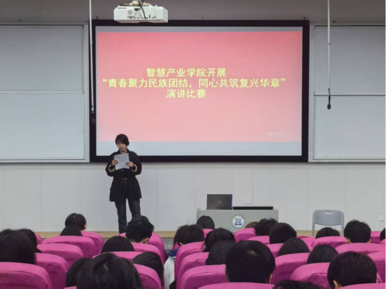 其他参赛同学也各展风采、表现亮眼。有的以身边各民族同学互助友爱的真实事例为切入点,讲述校园里守望相助的温暖日常;有的从红色历史与文化传承出发,抒发对中华民族大家庭的认同与热爱;还有的立足青年担当,畅谈如何以实际行动维护民族团结、助力民族复兴。同学们语言真挚、台风自信,充分展现了智慧学子昂扬向上的精神风貌。此次演讲比赛,不仅为学院学子搭建了展示自我、传递思想的良好平台,更以青春之音凝聚起民族团结的磅礴力量,让“团结一心、共赴复兴”的坚定信念在校园蔚然成风。