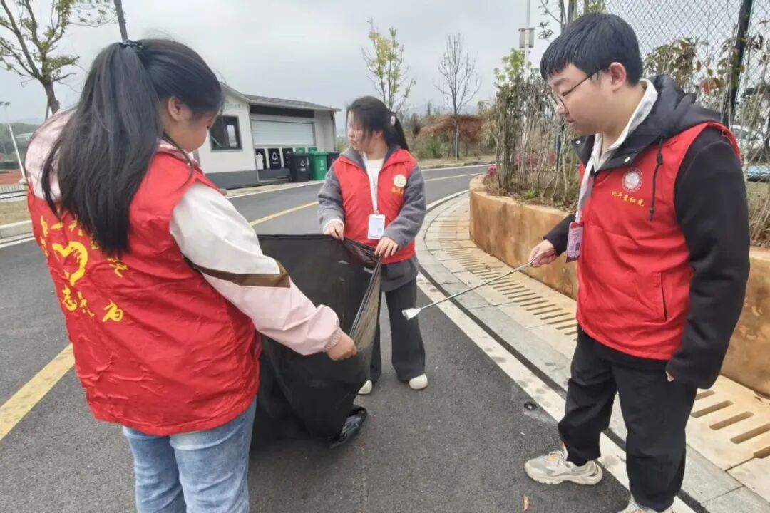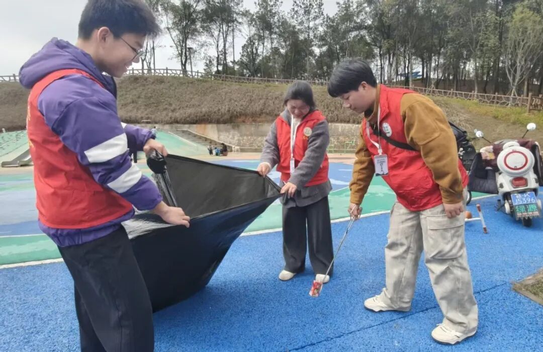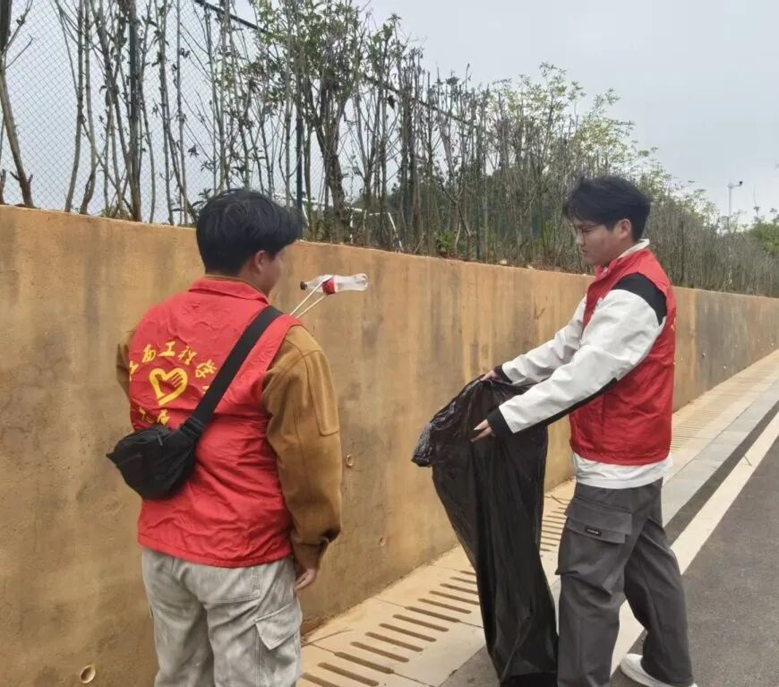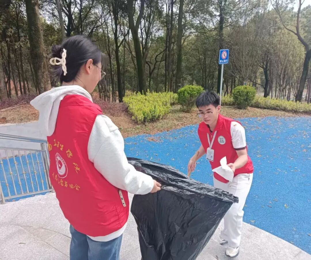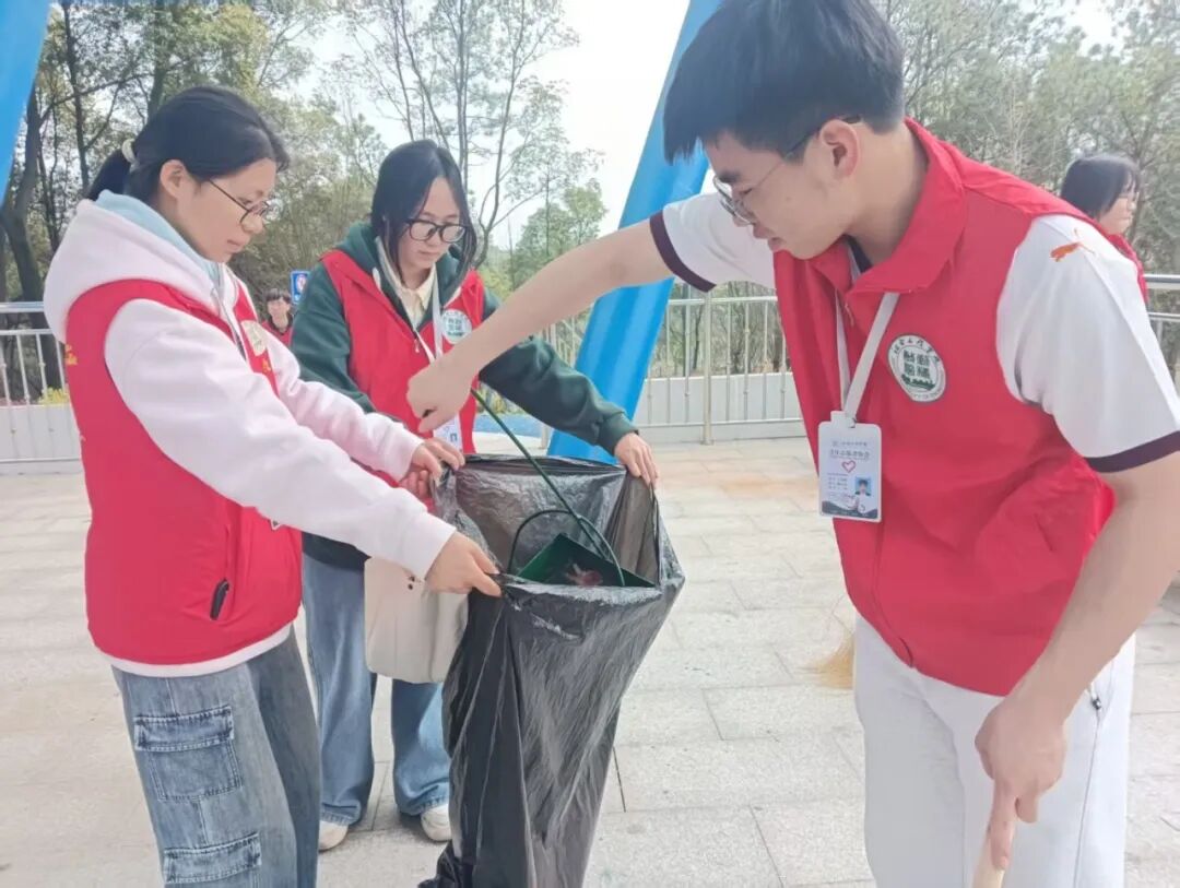 清理过程中,志愿者们干劲十足,细致入微地搜寻每一处角落,不放过任何一个隐藏的垃圾。面对分布广泛、清理难度大的任务,志愿者们没有丝毫退缩,以不畏脏累的劲头和迎难而上的毅力持续奋战。经过志愿者们的辛勤付出,公园及周边环境焕然一新,步道整洁清爽,整体面貌得到显著改善经过集中清理,志愿者们还不忘向过往市民宣传环保知识,耐心讲解护水节水的重要性,倡导大家从身边小事做起,共同守护家乡的绿水青山。志愿者们用实际行动诠释了“奉献、友爱、互助、进步”的志愿服务精神,也展现了当代青年学子投身生态文明建设的责任担当。