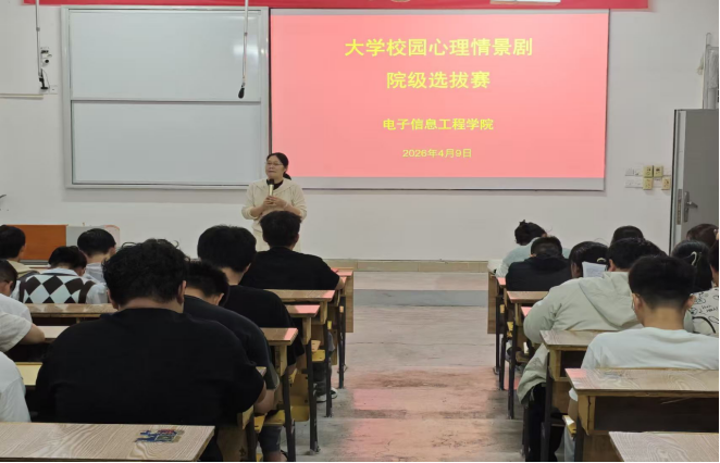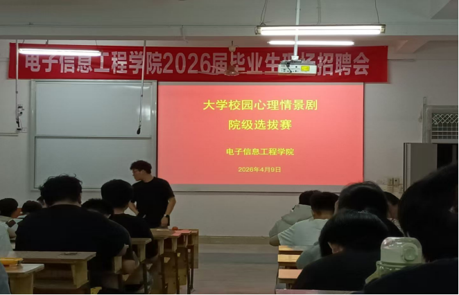 为进一步加强大学生心理健康教育,丰富校园文化生活,引导学生关注心理健康、提升心理调适能力,4月9日,电子信息工程学院成功举办大学校园心理情景剧院级选拔赛。