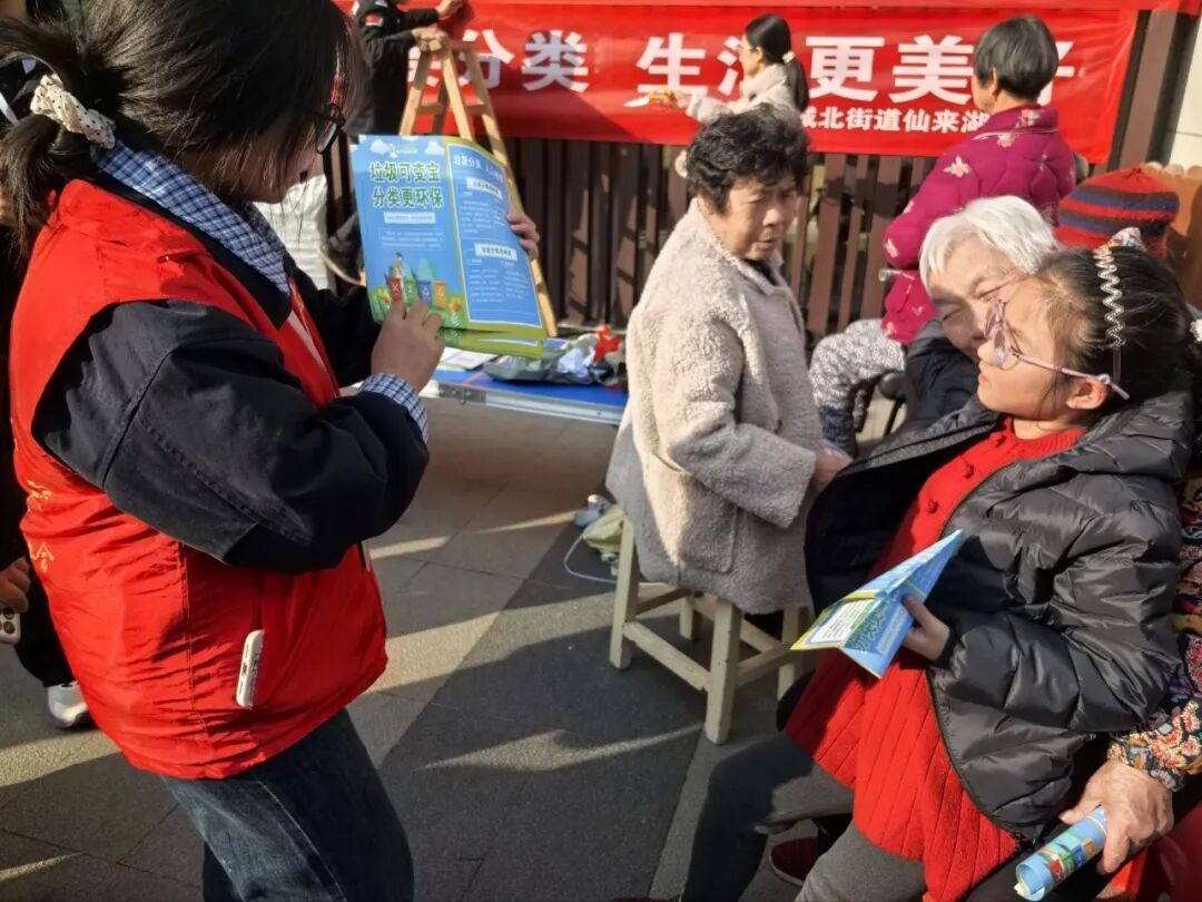 在“知识宣讲活动”中,志愿者们提前布置好场地,通过悬挂横幅、摆放分类垃圾袋、通俗讲解等方式,向居民普及家庭常见垃圾的分类标准与投放要求,并对错误分类的危害进行说明。在开展的“传单派发活动”中,志愿者们主动礼貌地向居民,特别是老年居民,派发并讲解印有垃圾分类知识的彩色传单,确保宣传内容易懂、实用,同时,并赠送环保垃圾袋以此作为鼓励。