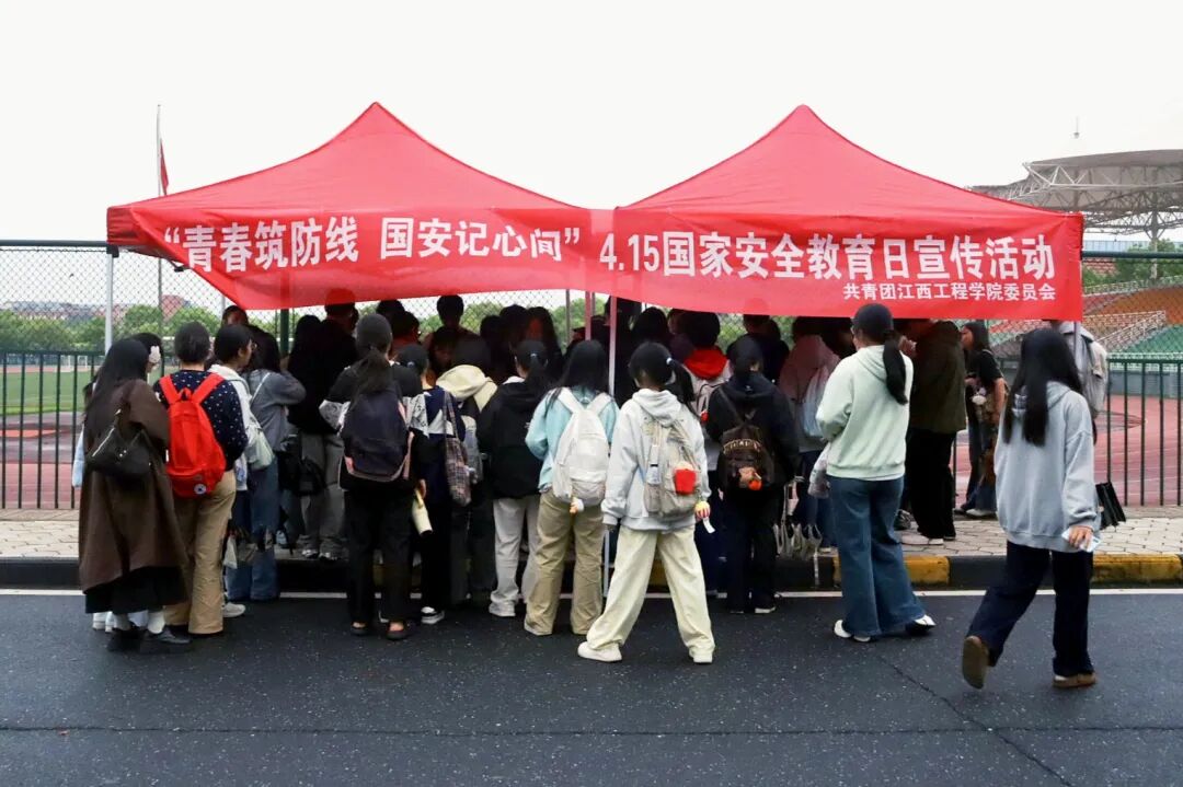 国家安全,安邦基石;青年担当,使命在肩。4月15日是全民国家安全教育日,江西工程学院以“青春筑防线,国安记心间”为主题的校园宣传活动,分别在天工校区和仙女湖校区火热开启。本次活动以趣味答题为载体,在轻松互动中传递安全知识,让严肃的普法宣传变成了校园里超有人气的”知识派对”。也让国家安全知识走进校园、深入人心,在轻松氛围里筑牢青年学子的安全意识防线。