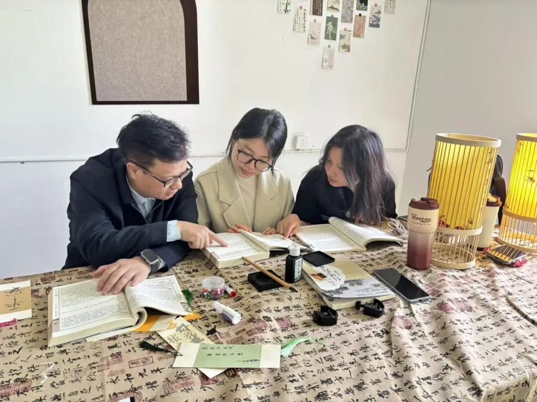 汉语言文学专业系列工作室则是文字创意的孵化场。在传统文化研习空间,师生共读经典、研习书法,从散文小说创作到传统文化的现代解读,让文字成为创意的载体。古朴的桌布、雅致的灯笼营造出浓厚的文化氛围,让创作沉淀人文厚度。
