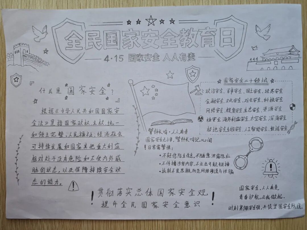 为深入贯彻总体国家安全观,切实增强全院学生的国家安全意识与责任担当,近日,电子信息工程学院成功举办国家安全教育主题手抄报、书法作品等系列征集活动。全院学子踊跃参与,以笔为刃、以墨为魂,用创意作品传递护国安邦的青春力量,在校园内营造了“人人学安全、人人守安全”的浓厚氛围。