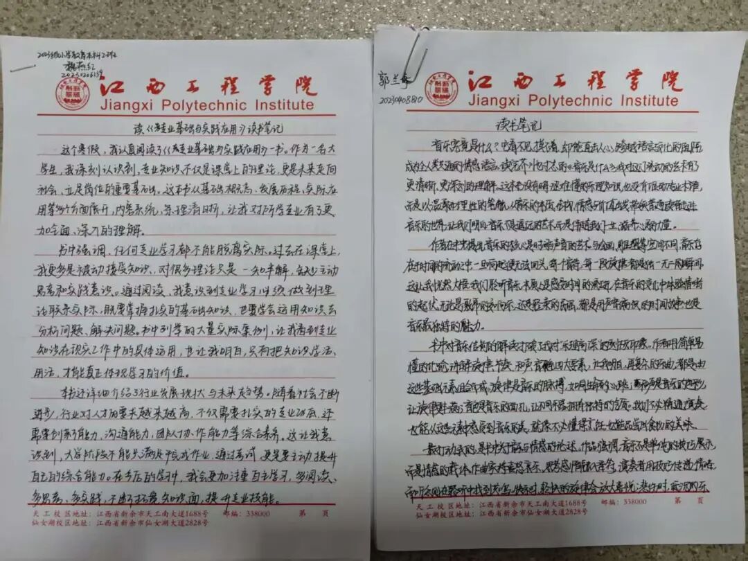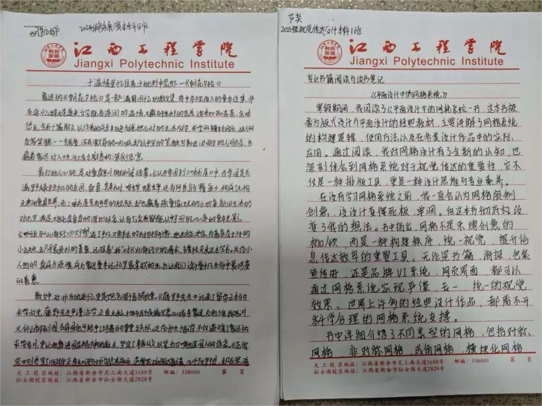本次优秀读书笔记展示现场,一本本工整的信纸读书笔记整齐陈列,成为校园里一道别样的“书香风景线”。展评的读书笔记中,同学们字迹娟秀工整、卷面整洁规范,既有对艺术设计、美术创作、视觉传达等专业核心知识点的系统梳理、经典理论的摘抄标注,也有结合自身专业学习实践的深度感悟、创作思路的延伸思考,更有对专业问题的探索与见解,充分展现了抱石艺术学院学子扎实的专业素养、勤于思考的学习习惯和认真严谨的学习态度。
